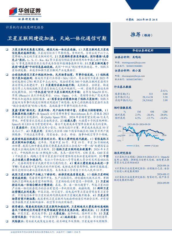 【华创证券】【20240920】计算机行业深度研究报告:卫星互联网建设加速,天地一体化通信可期-46页
