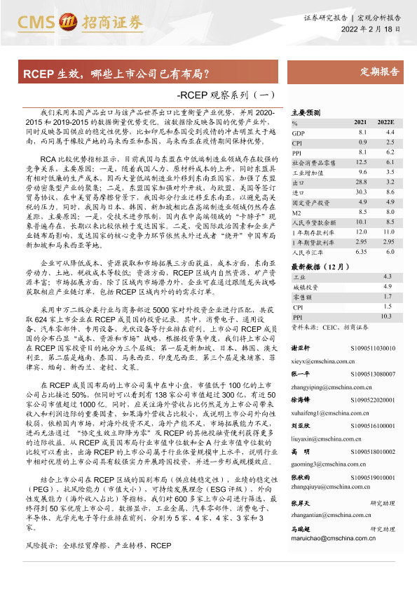 上市公司布局 宏观经济分析 投资机会 贸易政策 RCEP
