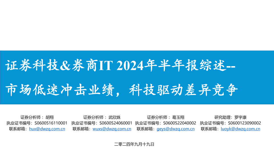 【东吴证券】【20240919】证券科技&券商IT行业2024年半年报综述:市场低迷冲击业绩,科技驱动差异竞争-31页