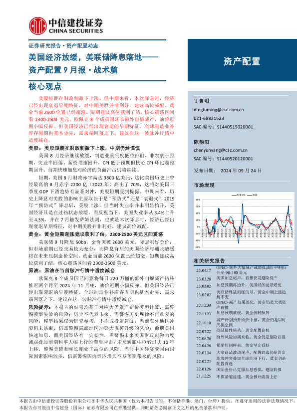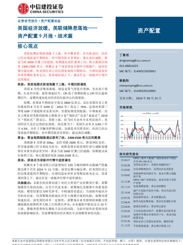 【中信建投证券】【20240924】资产配置9月报·战术篇:美国经济放缓,美联储降息落地-12页