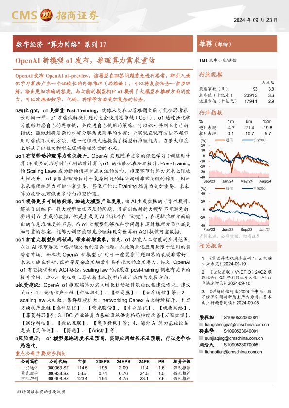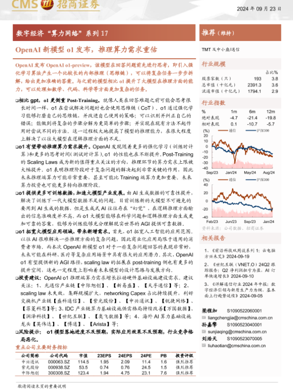 【海通证券】【20240923】通信行业数字经济“算力网络”系列17:OpenAI新模型o1发布,推理算力需求重估-9页