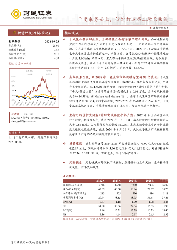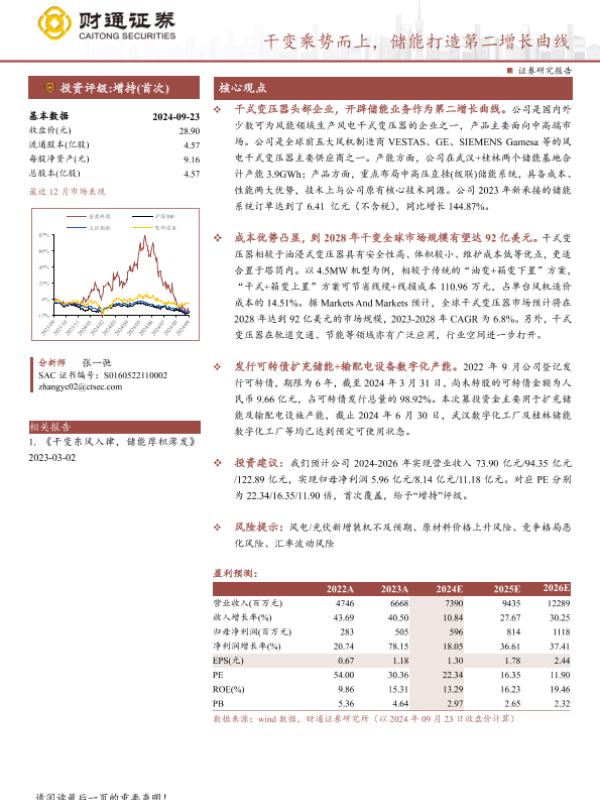 储能系统 市场预测 干式变压器 财务分析 风电设备