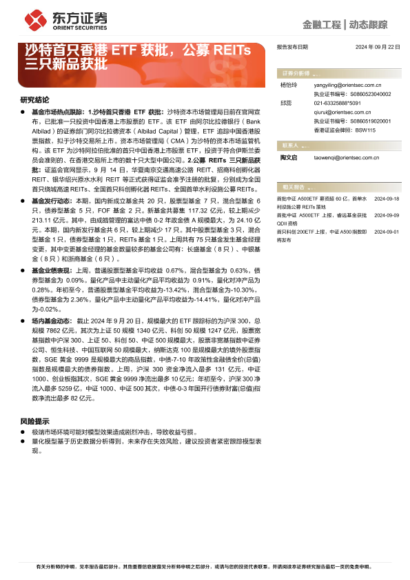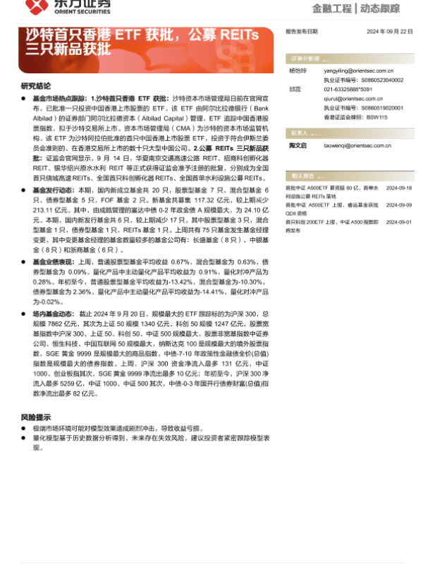 【东方证券】【20240922】金融工程动态跟踪:沙特首只香港ETF获批,公募REITs三只新品获批-14页