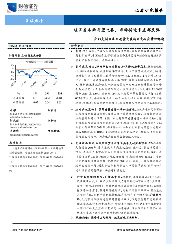 【财信证券】【20240924】金融支持经济高质量发展新闻发布会精神解读:经济基本面有望改善,市场将迎来底部反弹-11页
