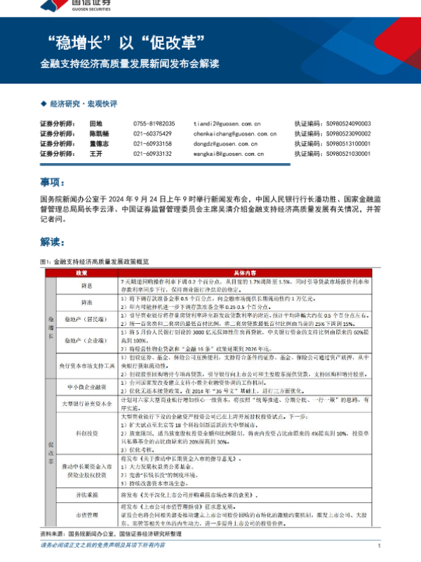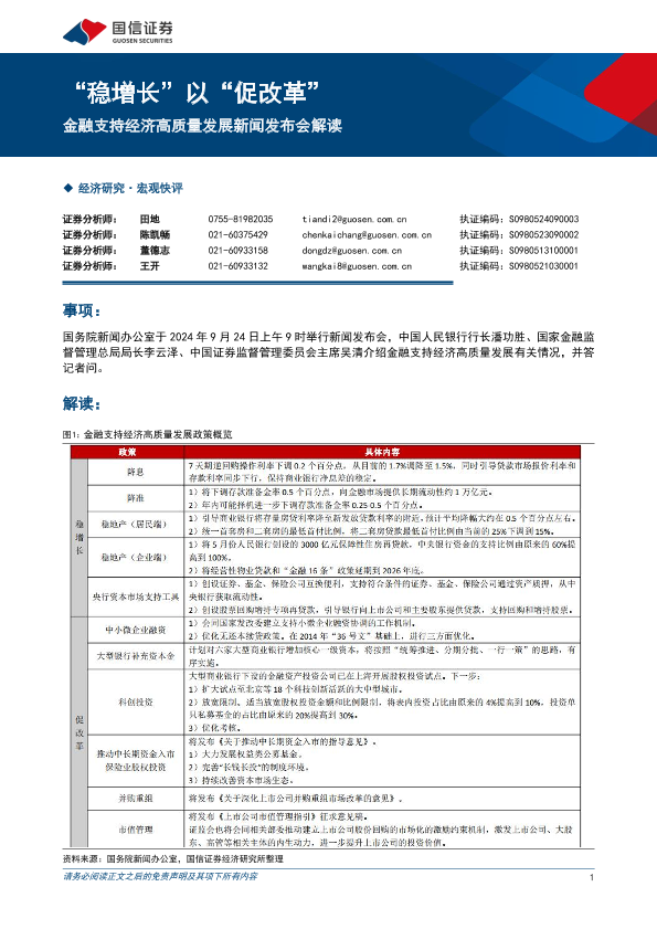 【国信证券】【20240924】金融支持经济高质量发展新闻发布会解读:“稳增长”以“促改革”-10页