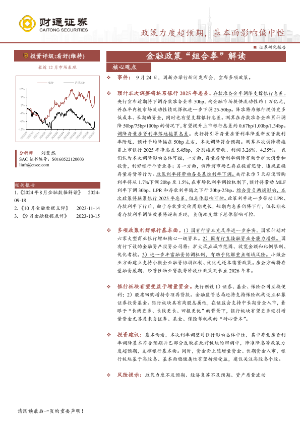 【财通证券】【20240925】银行业金融政策“组合拳”解读:政策力度超预期,基本面影响偏中性-11页