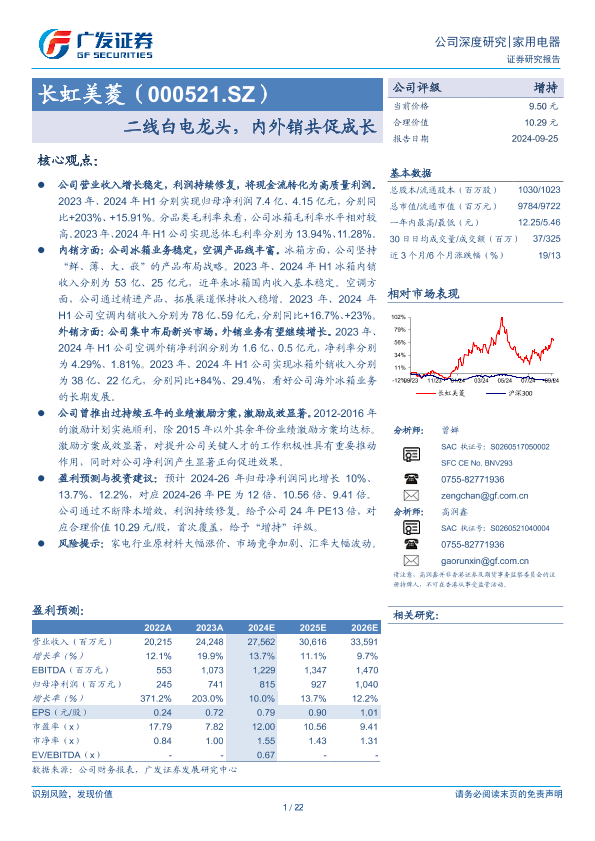 【广发证券】【20240925】长虹美菱(000521)二线白电龙头,内外销共促成长-22页