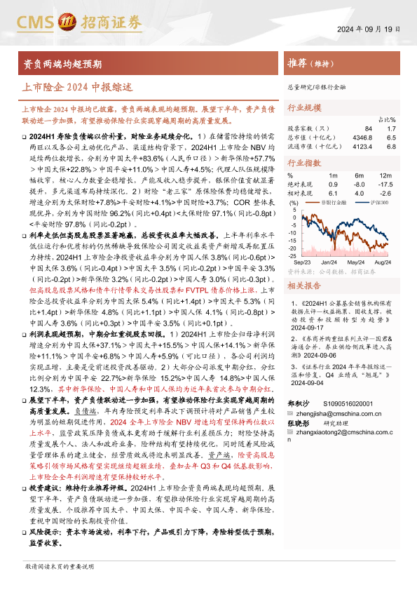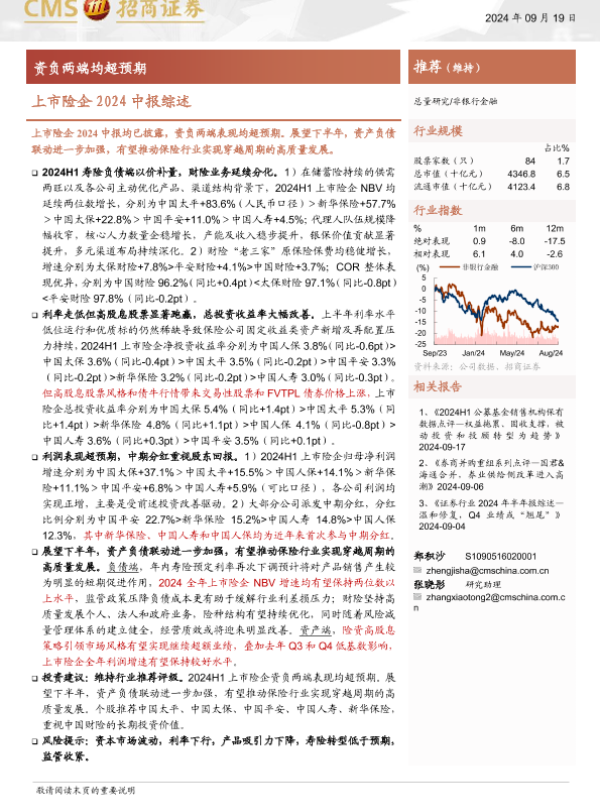 【海通证券】【20240919】非银行金融行业上市险企2024中报综述:资负两端均超预期-15页