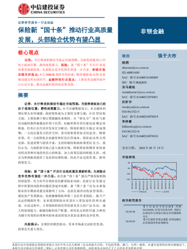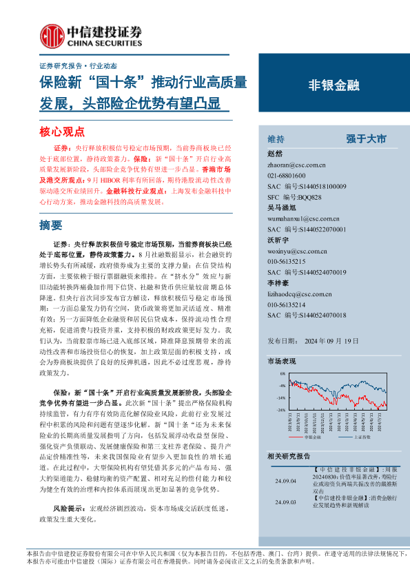 【中信建投证券】【20240919】非银金融行业:保险新“国十条”推动行业高质量发展,头部险企优势有望凸显-24页