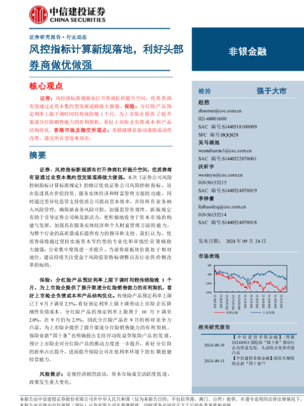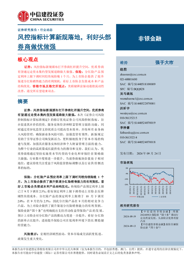 【中信建投证券】【20240924】非银金融行业:风控指标计算新规落地,利好头部券商做优做强-27页