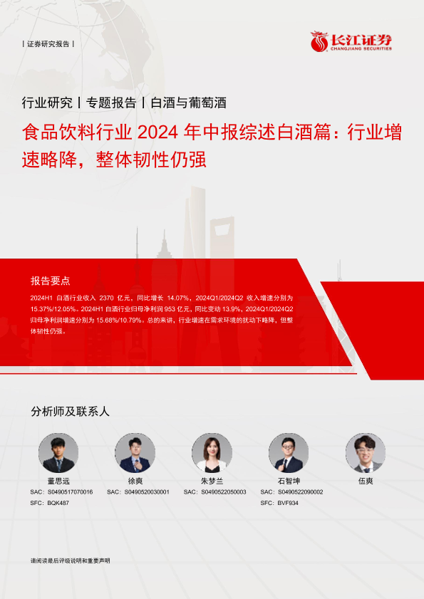 【长江证券】【20240922】食品饮料行业2024年中报综述白酒篇:行业增速略降,整体韧性仍强-17页
