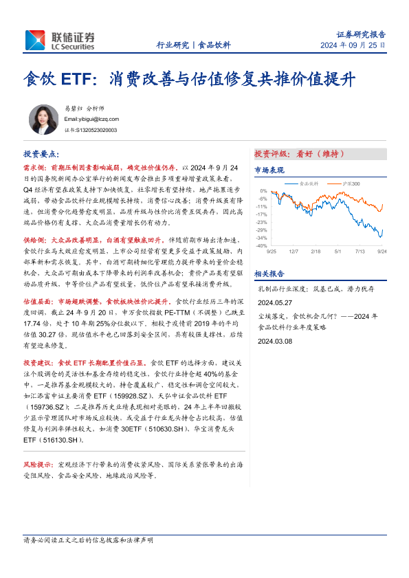 【联储证券】【20240925】食品饮料行业研究:食饮ETF,消费改善与估值修复共推价值提升-19页