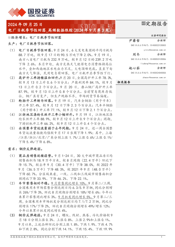 【国投证券】【20240925】高频数据跟踪(2024年9月第3周):电厂日耗季节性回落-15页