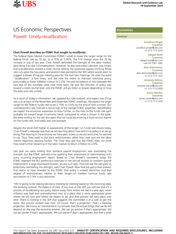【UBS Securities LLC】【20240918】US Economic Perspectives Powell timely recalibration-8页
