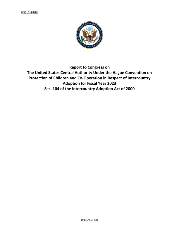 【United States Department of State】【2023】2023美国跨国收养方面保护儿童及海牙公约框架下合作的报告-27页