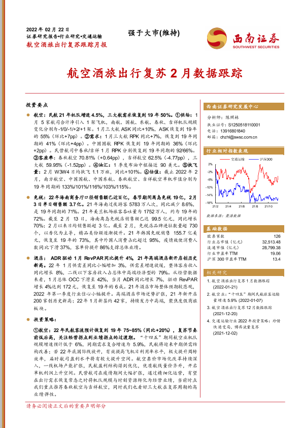 【西南证券】【20220222】交通运输行业航空酒旅出行复苏跟踪月报:航空酒旅出行复苏2月数据跟踪-21页