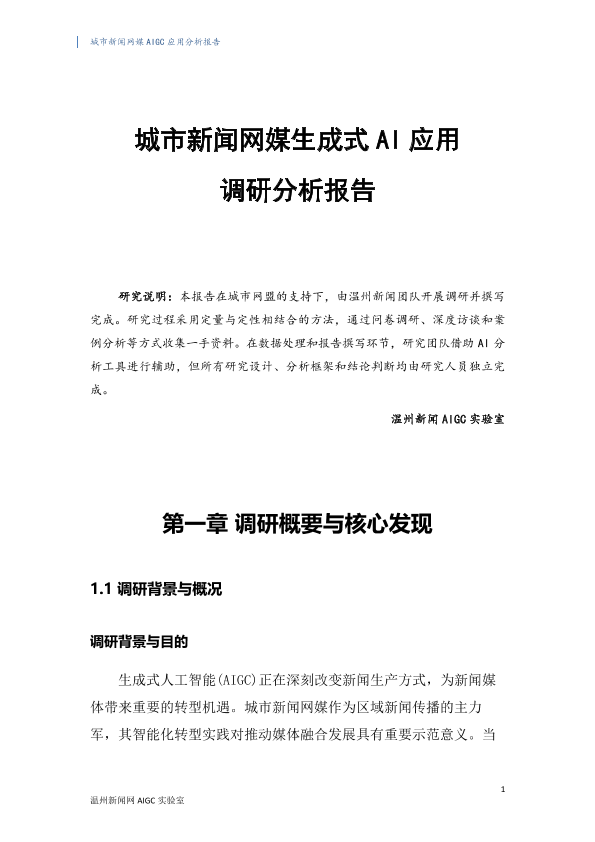 【温州新闻网 AIGC实验室】【2023】城市新闻网媒生成式AI+应用调研分析报告-67页