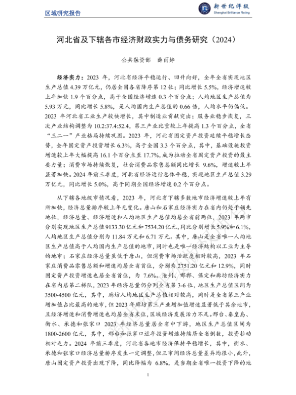 【公共融资部】【2024】河北省及下辖各市经济财政实力与债务研究(2024)-24页