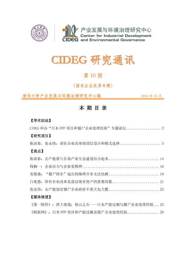 【清华大学产业发展与环境治理研究中心】【201610】研究通讯 第十期-国有企业改革专题-33页