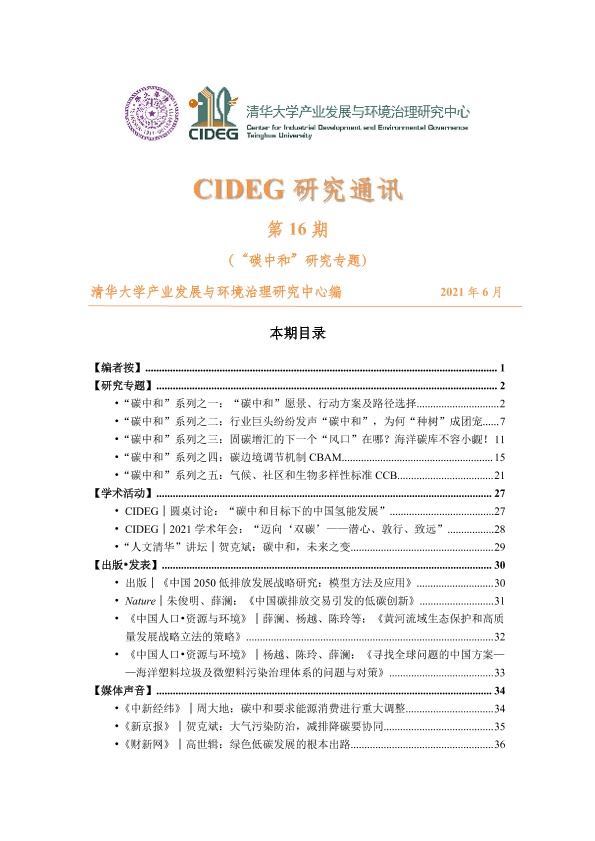【清华大学产业发展与环境治理研究中心】【202106】研究通讯第十六期-碳中和专题-38页
