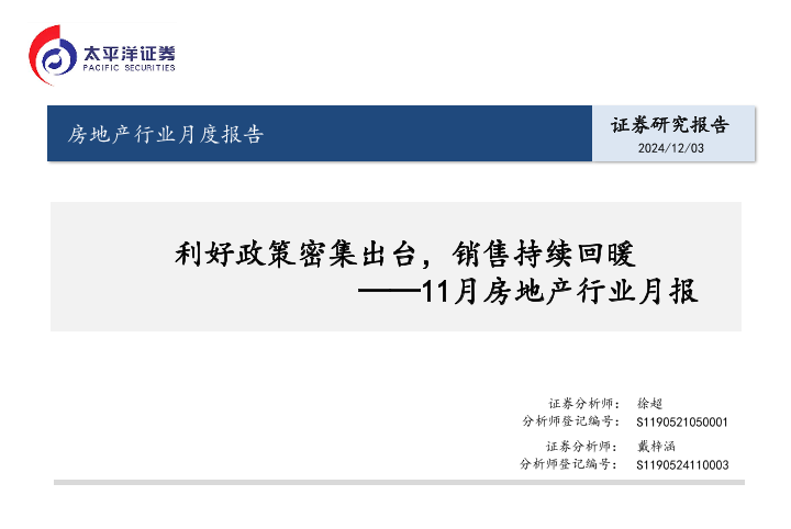 【太平洋证券】【20241203】11月房地产行业月报:利好政策密集出台,销售持续回暖-16页