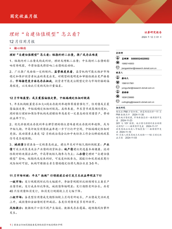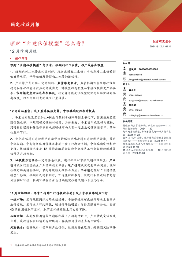 【西部证券】【20241201】12月信用月报:理财“自建估值模型”怎么看?-19页
