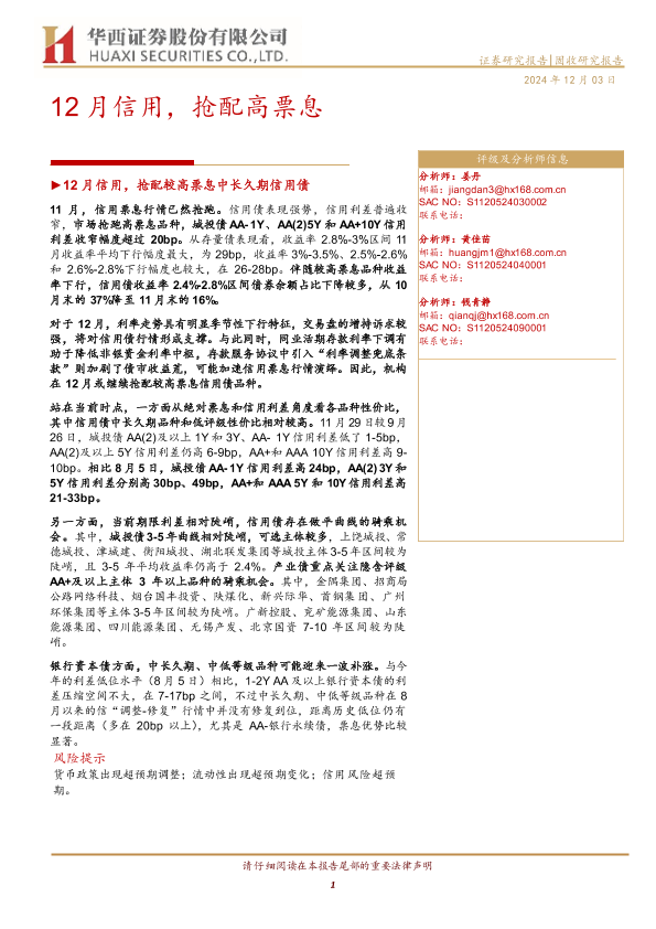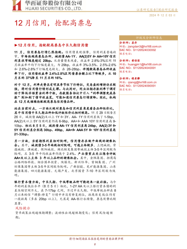 【华西证券】【20241203】12月信用,抢配高票息-22页