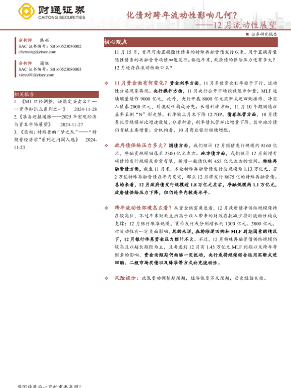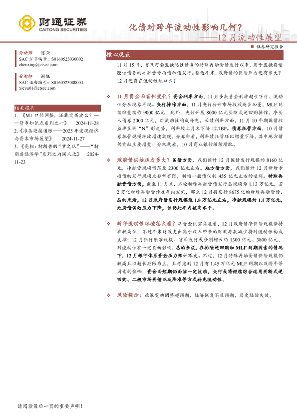 【财通证券】【20241202】12月流动性展望:化债对跨年流动性影响几何?-12页