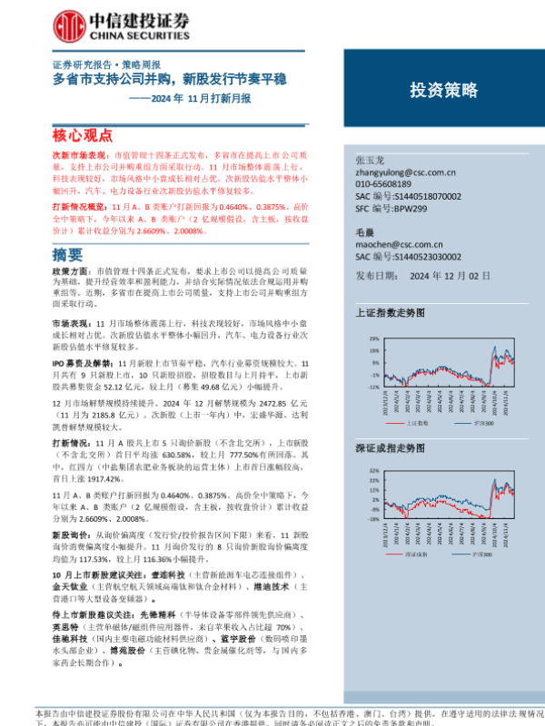 【中信建投证券】【20241202】2024年11月打新月报:多省市支持公司并购,新股发行节奏平稳-25页