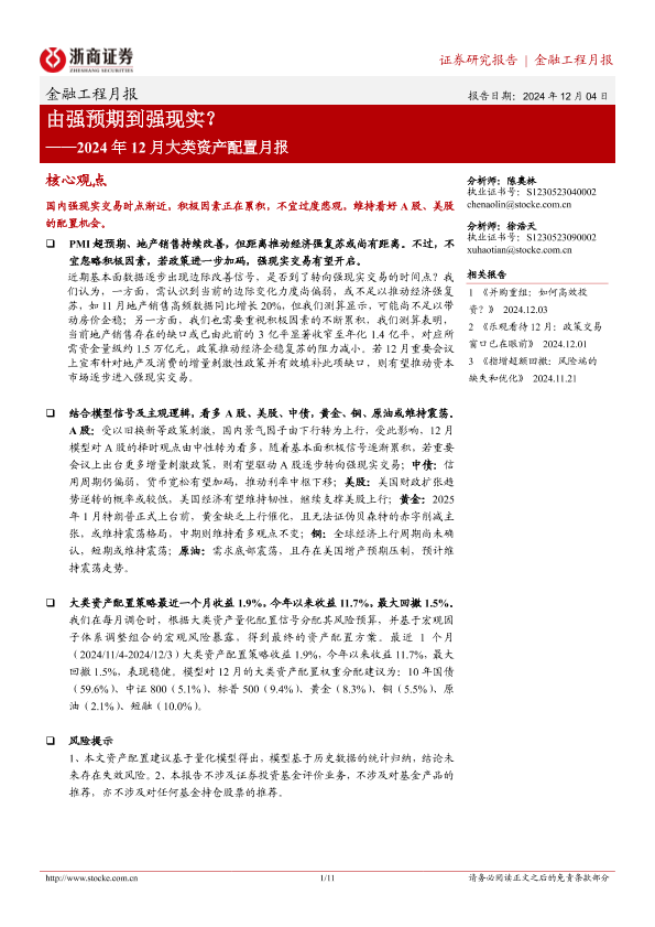 【浙商证券】【20241204】2024年12月大类资产配置月报:由强预期到强现实?-11页