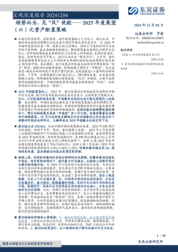 【东吴证券】【20241204】2025年度展望(六)之资产配置策略:顺势而为,见“风”使舵-25页