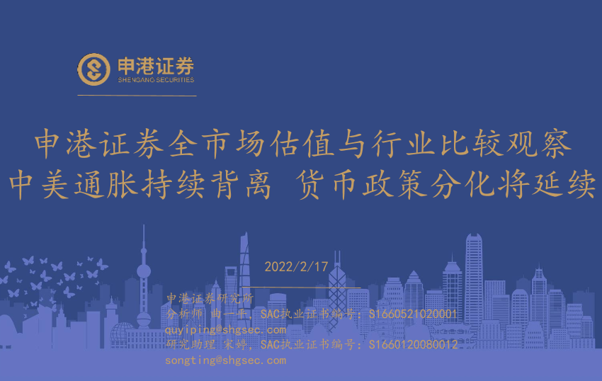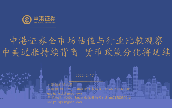 【申港证券】【20220217】全市场估值与行业比较观察:中美通胀持续背离,货币政策分化将延续-32页