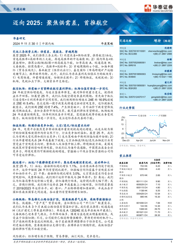 【华泰证券】【20241130】交通运输行业年度策略:迈向2025,聚焦供需差,首推航空-47页