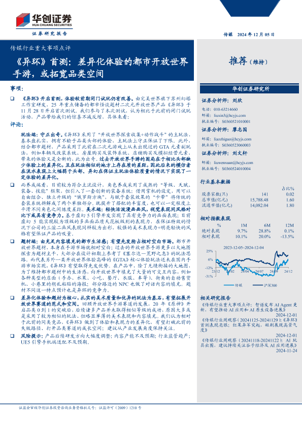 【华创证券】【20241205】传媒行业重大事项点评:《异环》首测,差异化体验的都市开放世界手游,或拓宽品类空间-11页