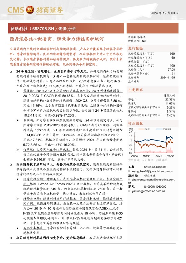 【海通证券】【20241203】佳驰科技(688708)新股分析:隐身装备核心配套商,强竞争力铸就高护城河-27页