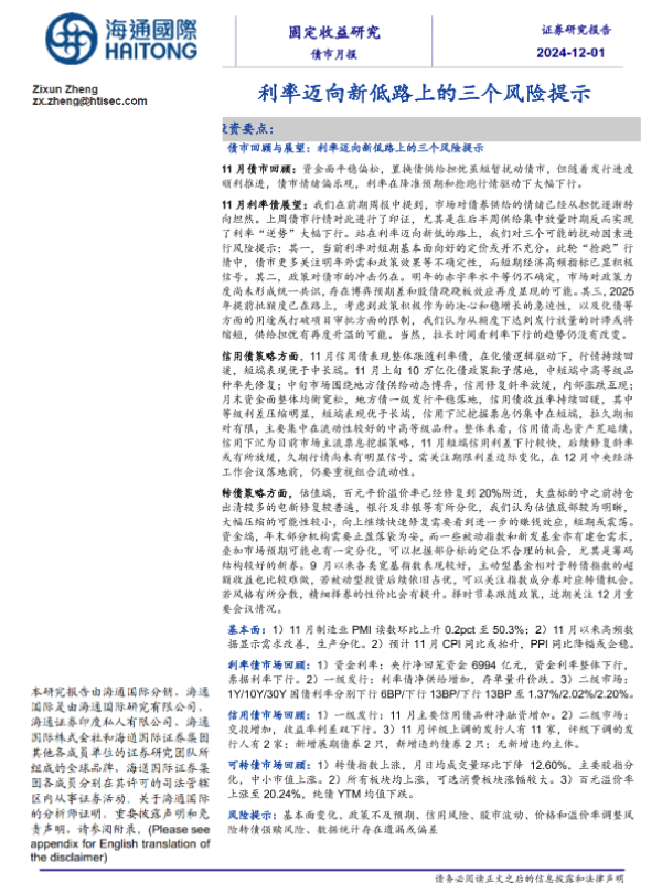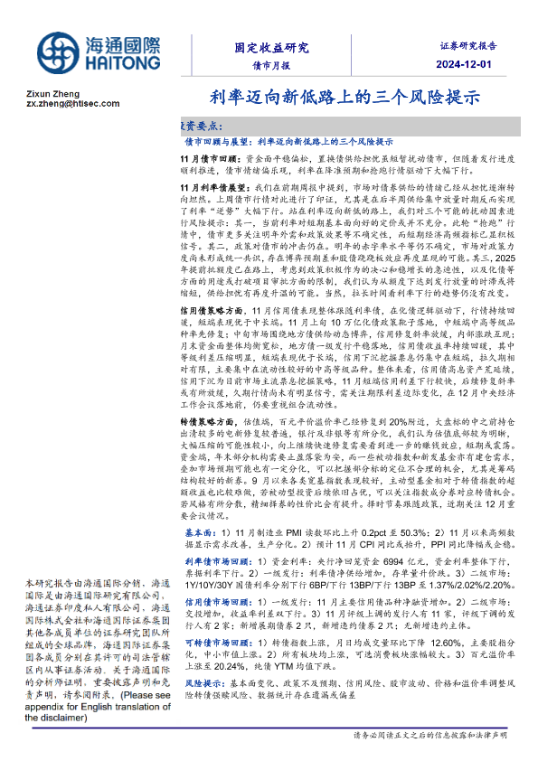 【海通国际】【20241201】债市月报:利率迈向新低路上的三个风险提示-31页