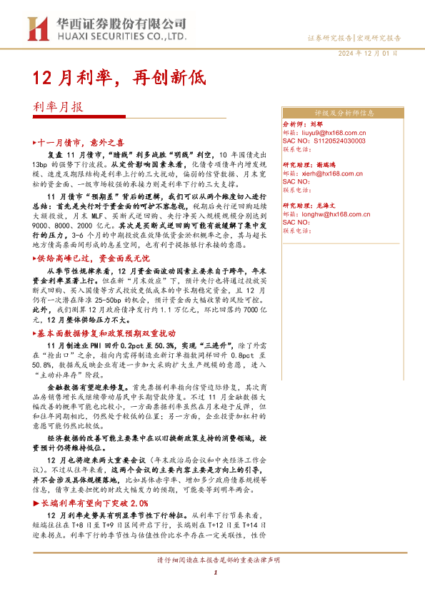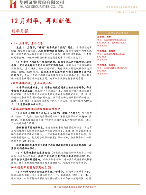 【华西证券】【20241201】利率月报:12月利率,再创新低-17页