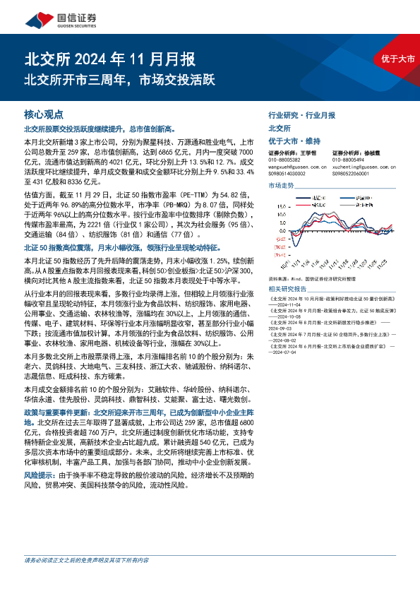 【国信证券】【20241203】北交所2024年11月月报:北交所开市三周年,市场交投活跃-25页