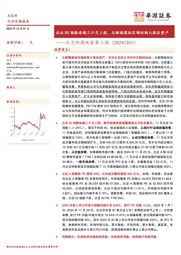 【华源证券】【20241201】北交所周观察第三期:北证50指数连续三个月上涨,五新隧装拟定增收购大股东资产-16页