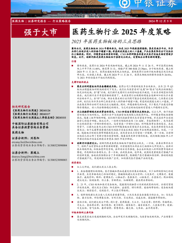 【中银证券】【20241205】医药生物行业2025年度策略:2025年医药生物板块的三点思路-30页