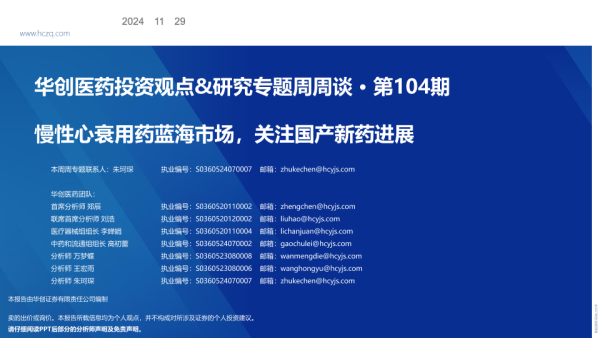 【华创证券】【20241129】医药行业投资观点&研究专题周周谈第104期:慢性心衰用药蓝海市场,关注国产新药进展-36页