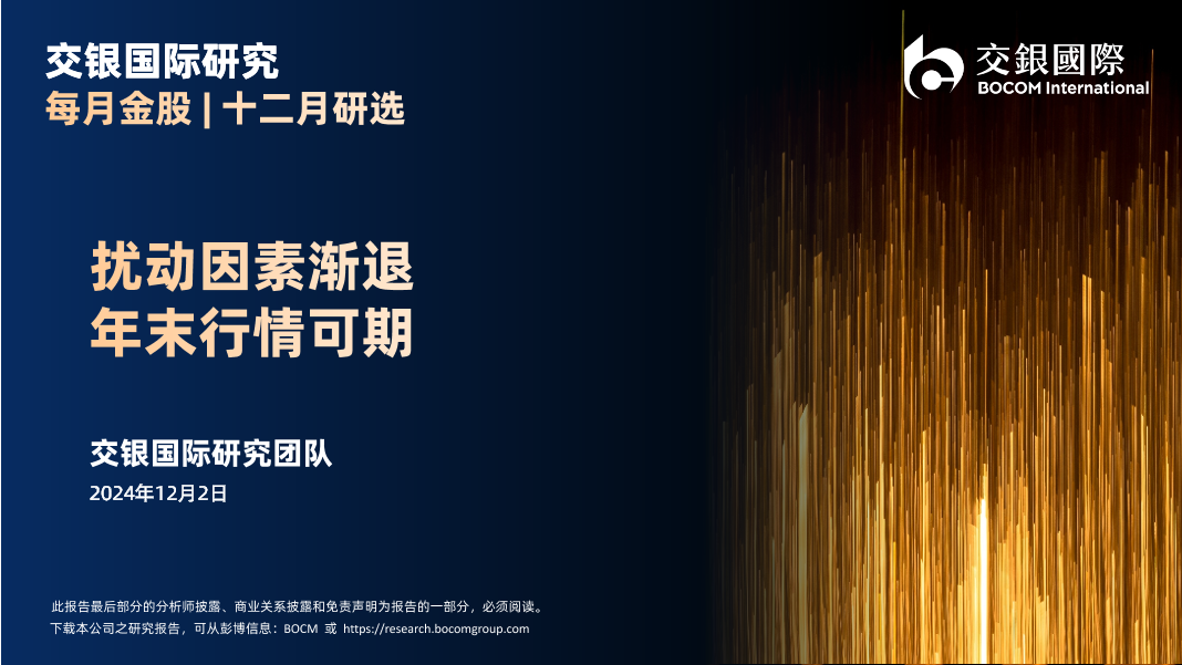 【交银国际】【20241202】十二月研选:扰动因素渐退,年末行情可期-14页