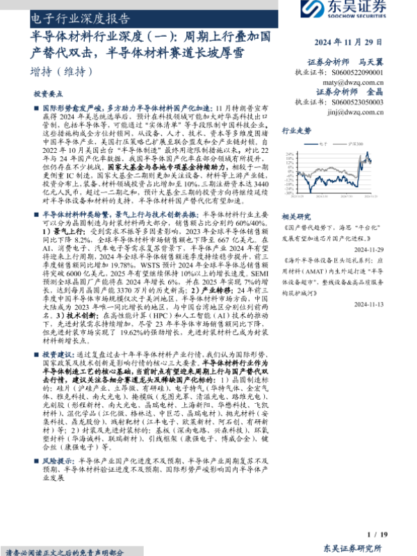【东吴证券】【20241129】半导体材料行业深度(一):周期上行叠加国产替代双击,半导体材料赛道长坡厚雪-19页