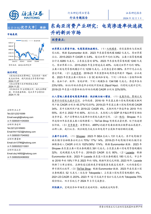 【海通证券】【20241201】商业贸易行业东南亚消费产业研究:电商渗透率快速提升的新兴市场-17页
