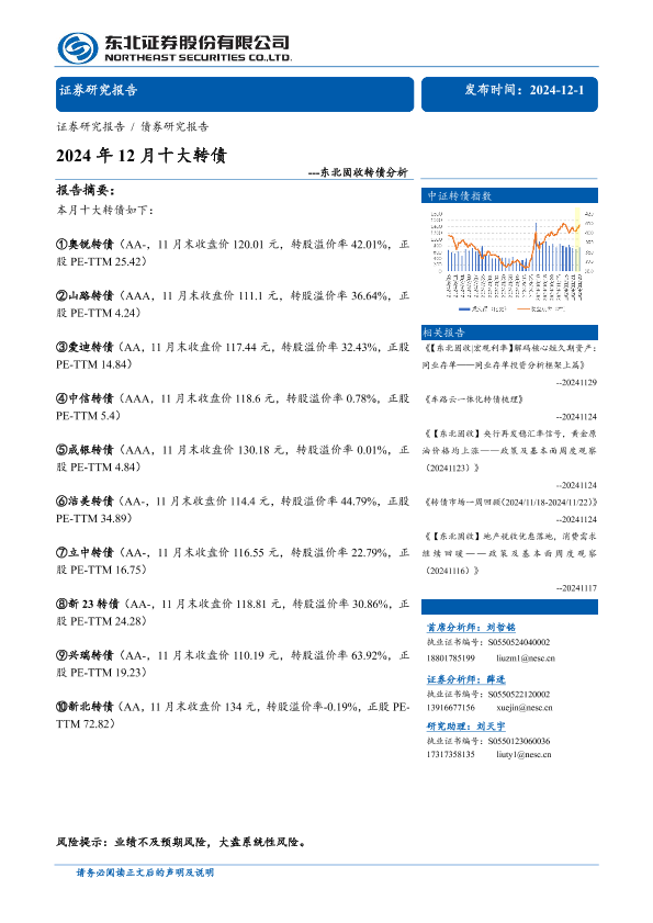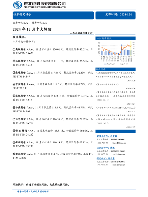 【东北证券】【20241201】固收转债分析:2024年12月十大转债-27页