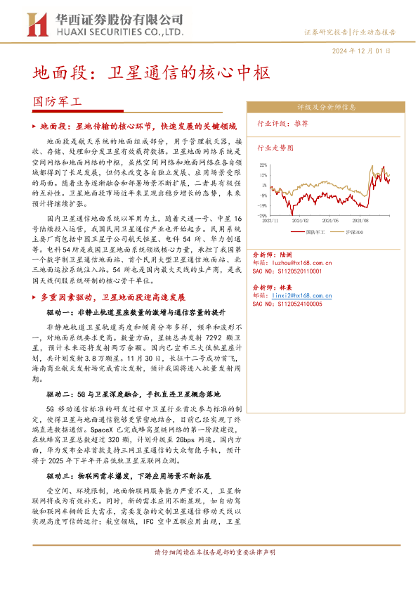 【华西证券】【20241201】国防军工行业地面段:卫星通信的核心中枢-22页