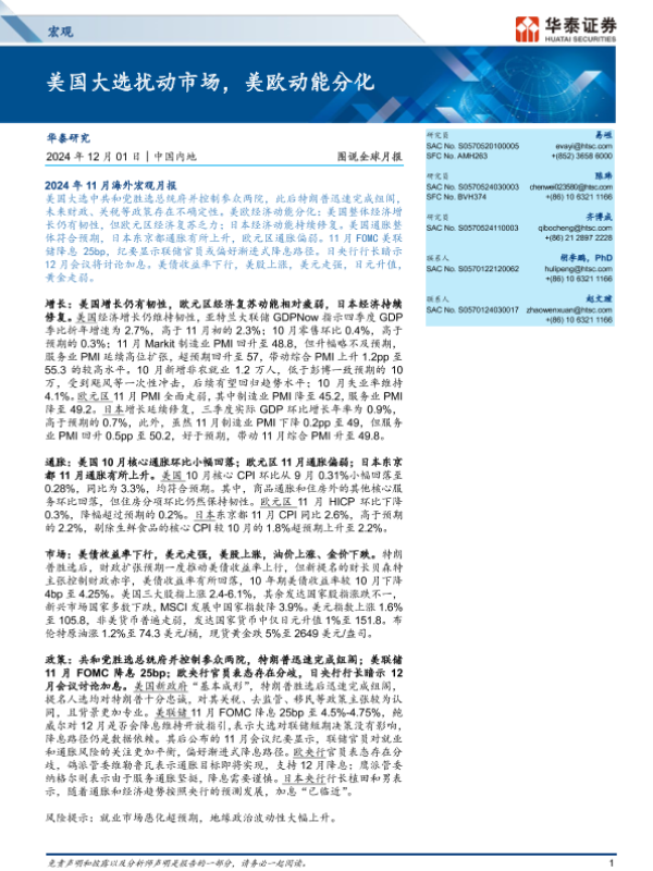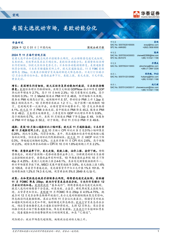 【华泰证券】【20241201】图说全球月报:美国大选扰动市场,美欧动能分化-14页