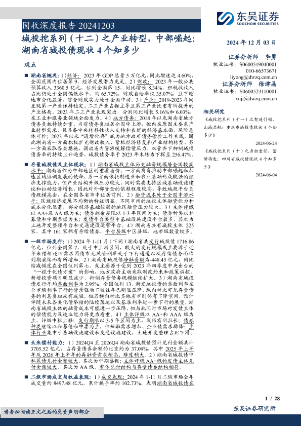 【东吴证券】【20241203】城投挖系列(十二)之产业转型,中部崛起:湖南省城投债现状4个知多少-28页