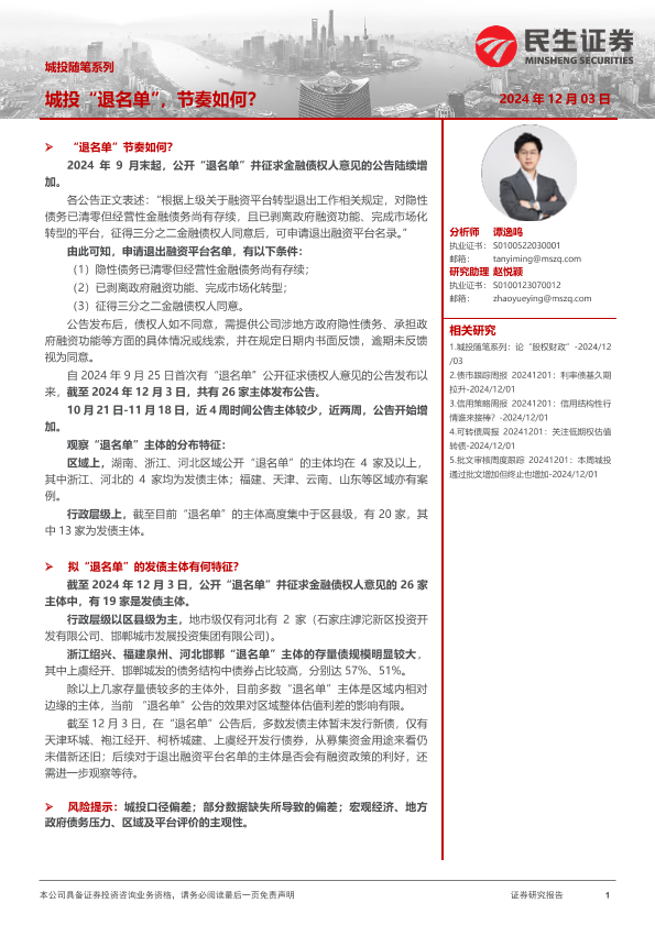 【民生证券】【20241203】城投随笔系列:城投“退名单”,节奏如何?-11页