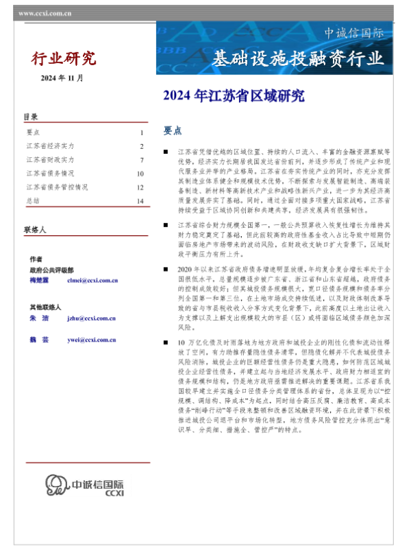 【中诚信国际】【202411】基础设施投融资行业:2024年江苏省区域研究-15页